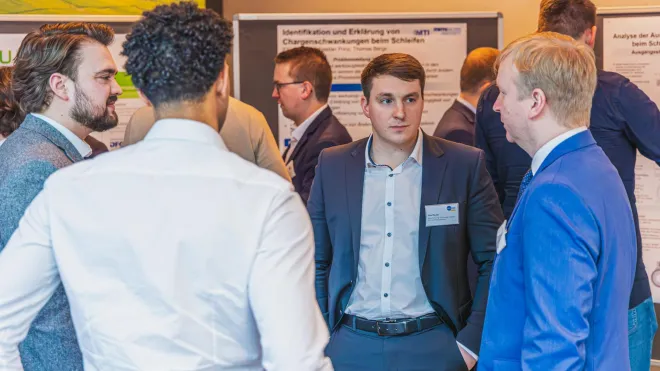 In der Themensession zu moderner Maschinentechnik zeigten in Ihren Vorträgen Jan Schmid (Erwin Junker Maschinenfabrik GmbH) und Mark Stocker (Fives Landis Ltd) auf, dass es sich lohnen kann, unkonventionelle konstruktive Ansätze mit einem hohen Neuheitsgrad in der Schleifmaschinenentwicklung zu verfolgen. Zu solchen Ansätzen zählen auch die Methoden der künstlichen Intelligenz und Simulationstechnik, die Prof. em. Dr.-Ing. Dr. h.c. Konrad Wegener (inspire AG) erläuterte. Obwohl sie zunächst Black-Box-Modelle scheinbar ohne physikalischen Hintergrund sind, ermöglicht ein wissenschaftliches Grundverständnis, die Berechnungsergebnisse zu plausibilisieren und in die Applikation zu bringen. Auch robotergestützte Automatisierungslösungen können in Zeiten des Fachkräftemangels zur ökonomischen Leistungsfähigkeit einer industriellen Produktion erforderlich sein. Erfolgversprechende Anwendungen, unter anderem im Teilehandling, präsentierte Robert Koopmann (Fanuc Deutschland GmbH) in seinem Vortrag, in dem er auch auf die Möglichkeiten der aktuell sehr medienpräsenten Large Language Models zur Unterstützung in der Programmierung einging. Die Zukunftsfähigkeit der schleiftechnischen Branche im deutschsprachigen Raum demonstrierten sechs spannende Impulsvorträge von Nachwuchswissenschaftlern fünf renommierter Hochschulen in der Postersession der Schleiftagung 2025.